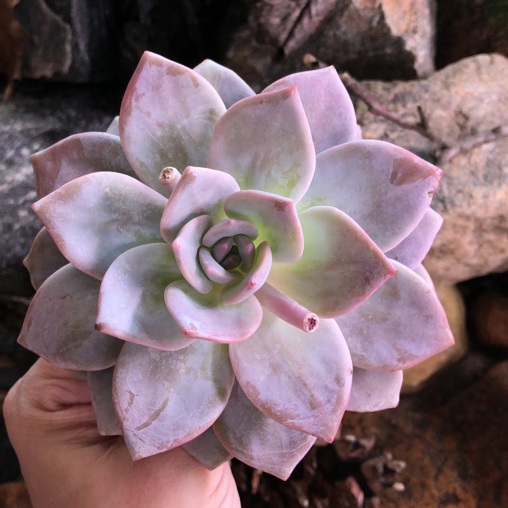 We have had Bianca in years past and these look different to those. This Bianca almost looking like Missing You, which we saw hit the succulent market heavily late last spring. The Bianca is definitely larger than Missing You, or at least this one is. She's measuring in at about 5.5" across. Stem only, but just arrived this past week. She does have a few rubs to her farina, we'll try to be very careful packaging her to prevent anymore. She also has one very small nick that you can see in our photo at the three o'clock position.